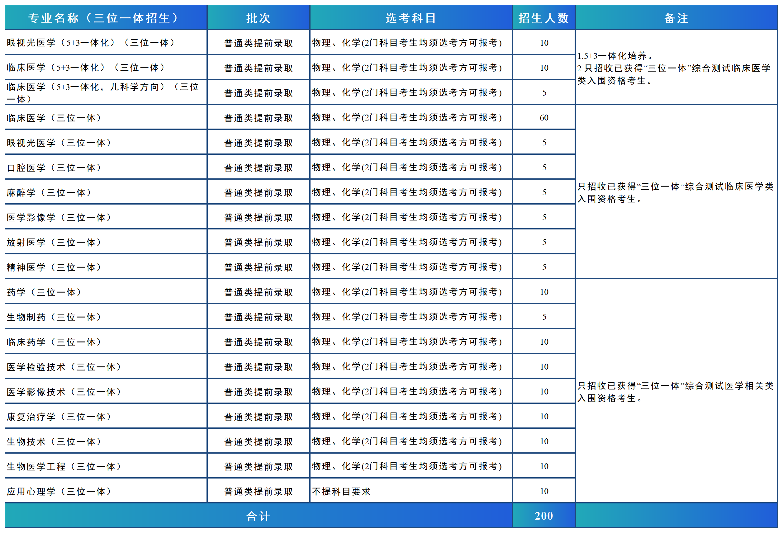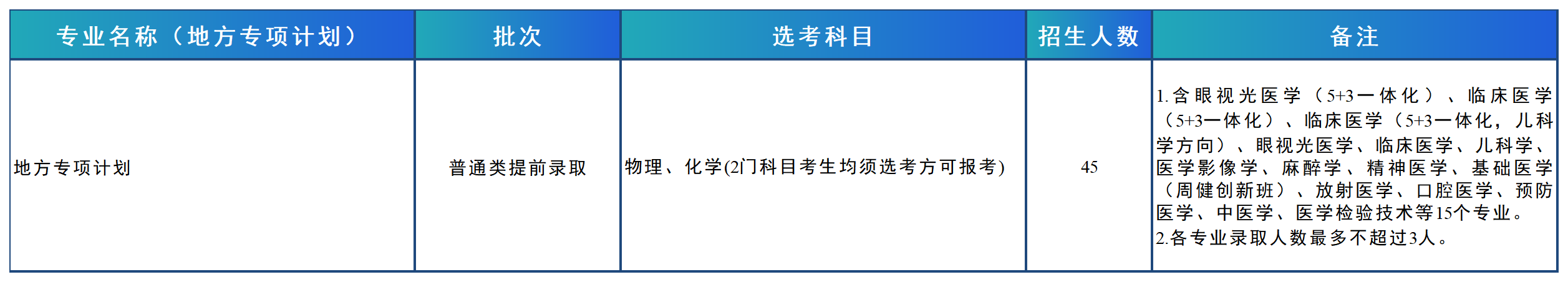 浙江省普通类提前本科分专业招生计划表