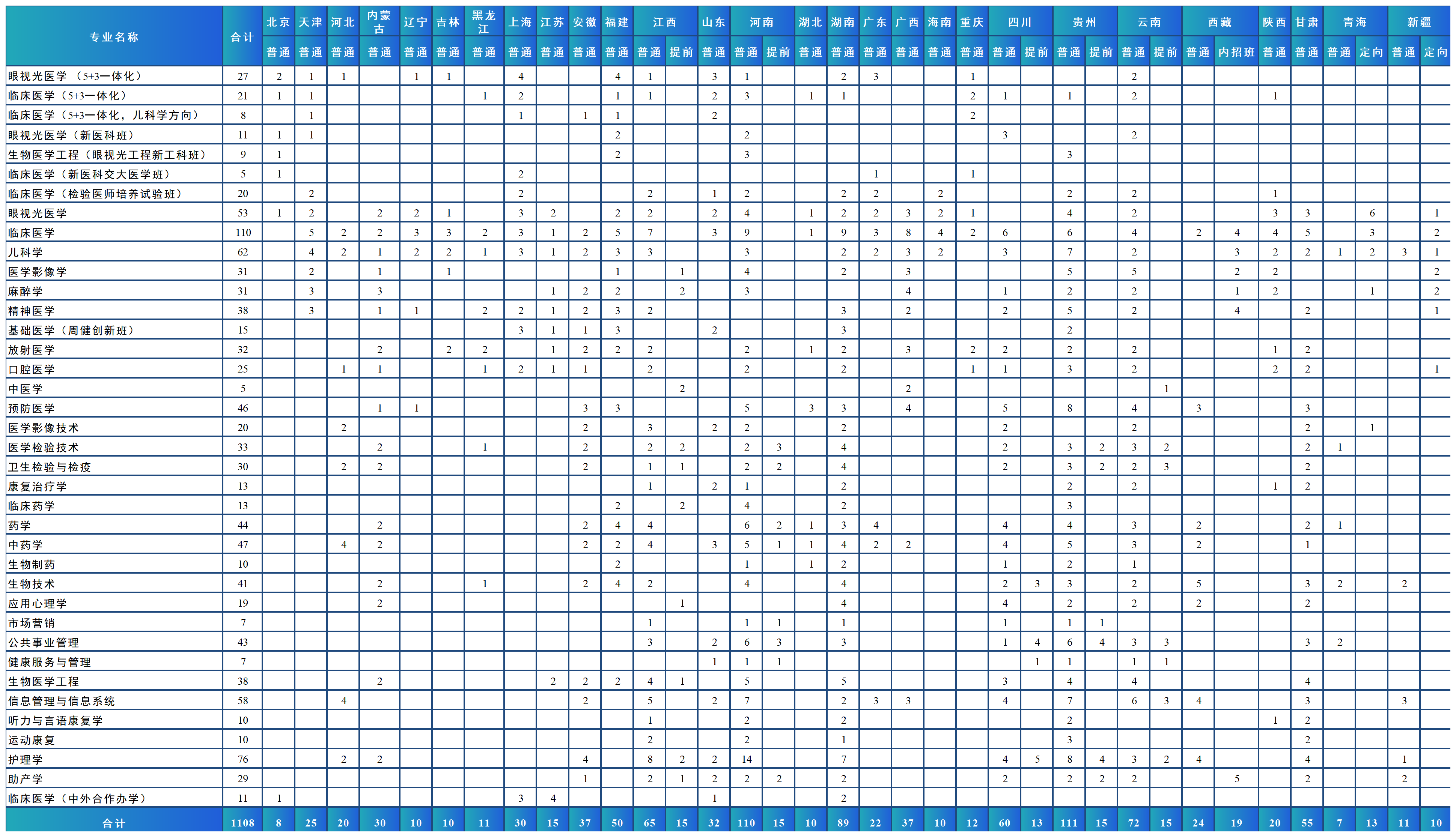 省外本科分省分专业招生计划表
