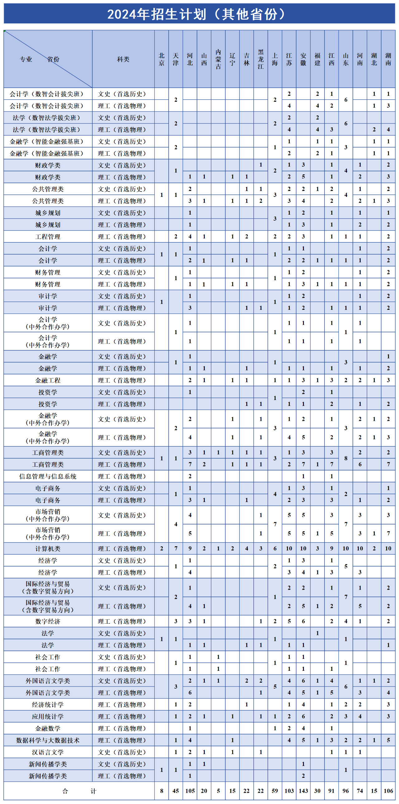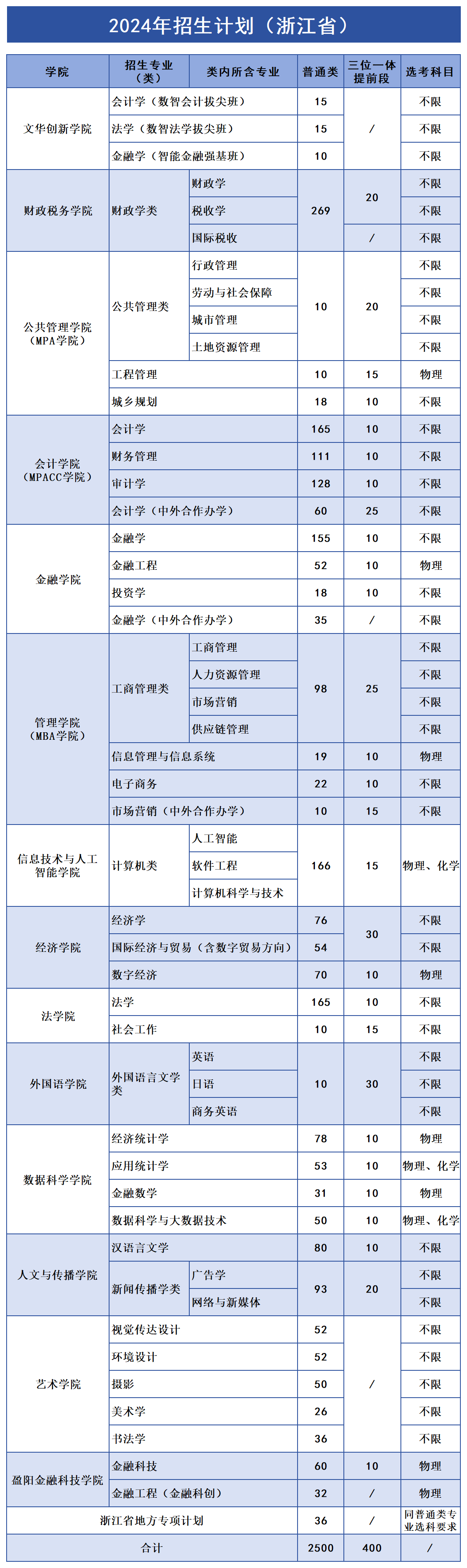 浙江财经大学2024年招生计划出炉
