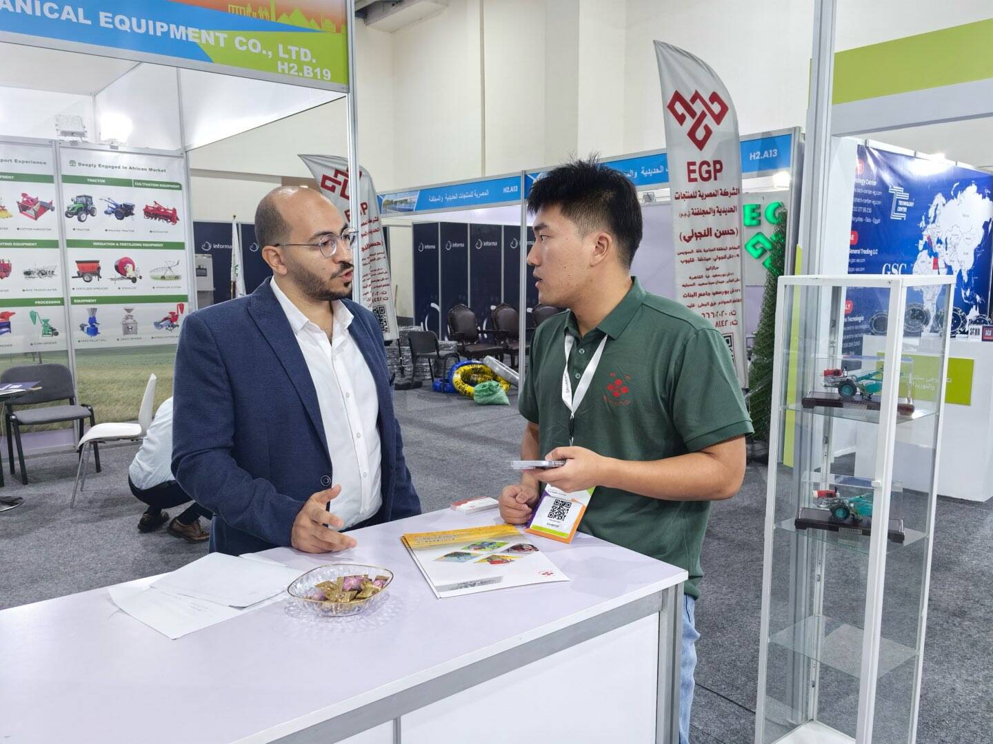 “我们天生敢‘闯’,随着非洲各国越来越重视农业现代化,对农机产品的需求在不断上升。”浙江挺能胜机械有限公司总经理应叶挺介绍,早在几个月前,埃及贸易商Ezat就通过社交平台联系上公司,咨询割晒机、收割机等多款农机设备。“得知我们要来埃及参展,他主动到展会来接洽。”应叶挺说。