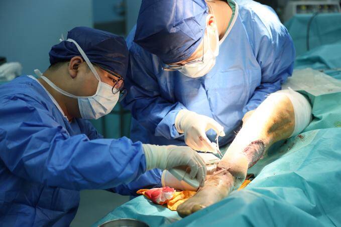 “开放性创伤的黄金治疗期在受伤后6-8小时内,首要任务是清创抗感染、恢复骨骼稳定性。”急诊抢救室会诊后,手足外科团队迅速敲定手术方案。当晚,由李钧主刀,带领团队率先开展“右腿保卫战”。