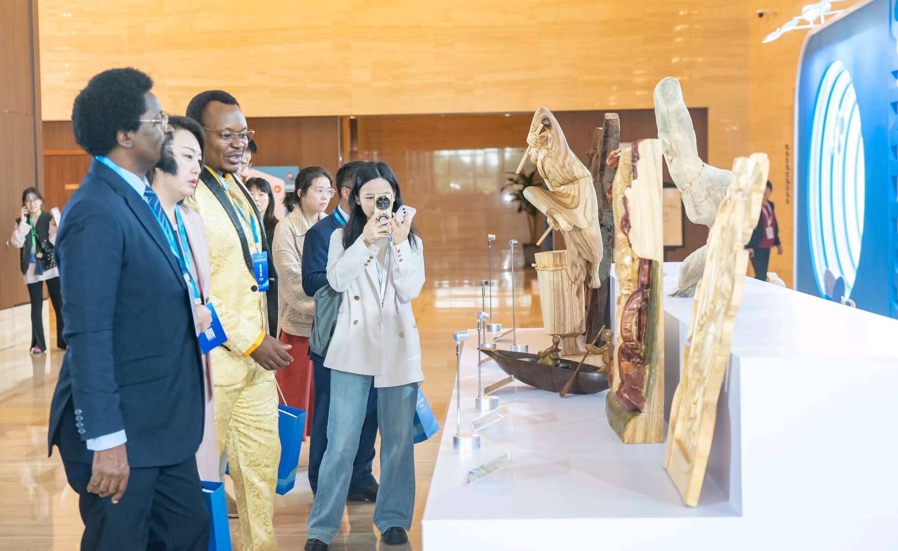 展品形态涵盖人物理想、器物容器、抽象雕塑、装饰挂件等多种形式,系统呈现中非艺术家在技艺切磋与理念碰撞中所取得的艺术成就。其中,“新象”板块展出的作品均出自本次来访的非洲艺术家之手,作品将非洲艺术独特的造型语言与金华木雕的经典技法、中国传统文化意象进行创造性结合。