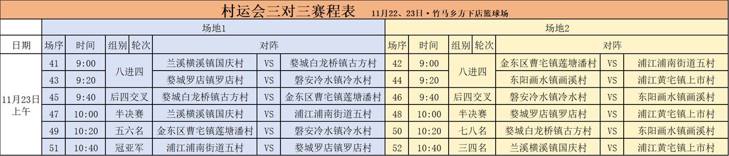 【9:23】金东区曹宅镇莲塘潘村与浦江浦南街道五村比赛结束,双方比分定格11:16。