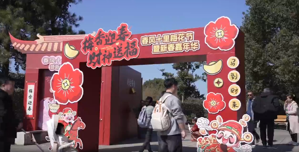 新春假期,漫步春风十里,3500多株梅花凌寒绽放,漫山梅香氤氲。景区内还保留着200多年树龄的古梅树,虬枝苍劲、暗香浮动,不少市民游客纷纷驻足赏花、拍照打卡,在枝头春意里迎接新年。