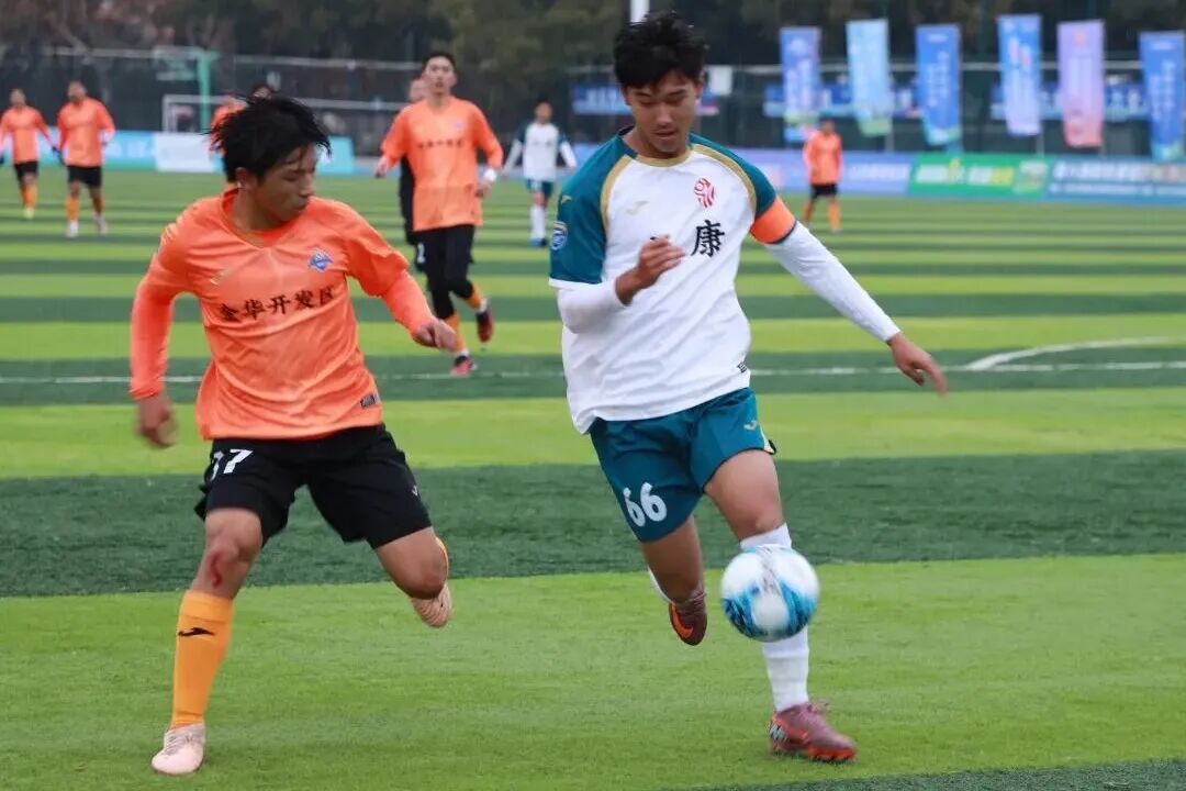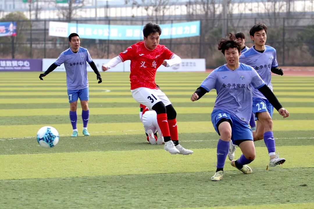 在兰溪队与金华开发区队的比赛中,金华开发区队凭借10号许俊强的惊艳发挥笑到最后。上半场第45分钟,许俊强点球命中为球队率先得分。易边再战,第51分钟,许俊强机敏插上在大禁区前沿迎球怒射,皮球应声入网。第78分钟,许俊强再次展现精湛脚法,一记精彩的任意球兜射完成帽子戏法,帮助球队锁定胜局。兰溪队全场攻势不断,但7号马昊宇的串联组织以及99号江钰坤第80分钟的抽射击中门柱,都未能转化为进球,最终0:3告负。