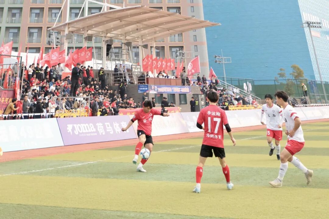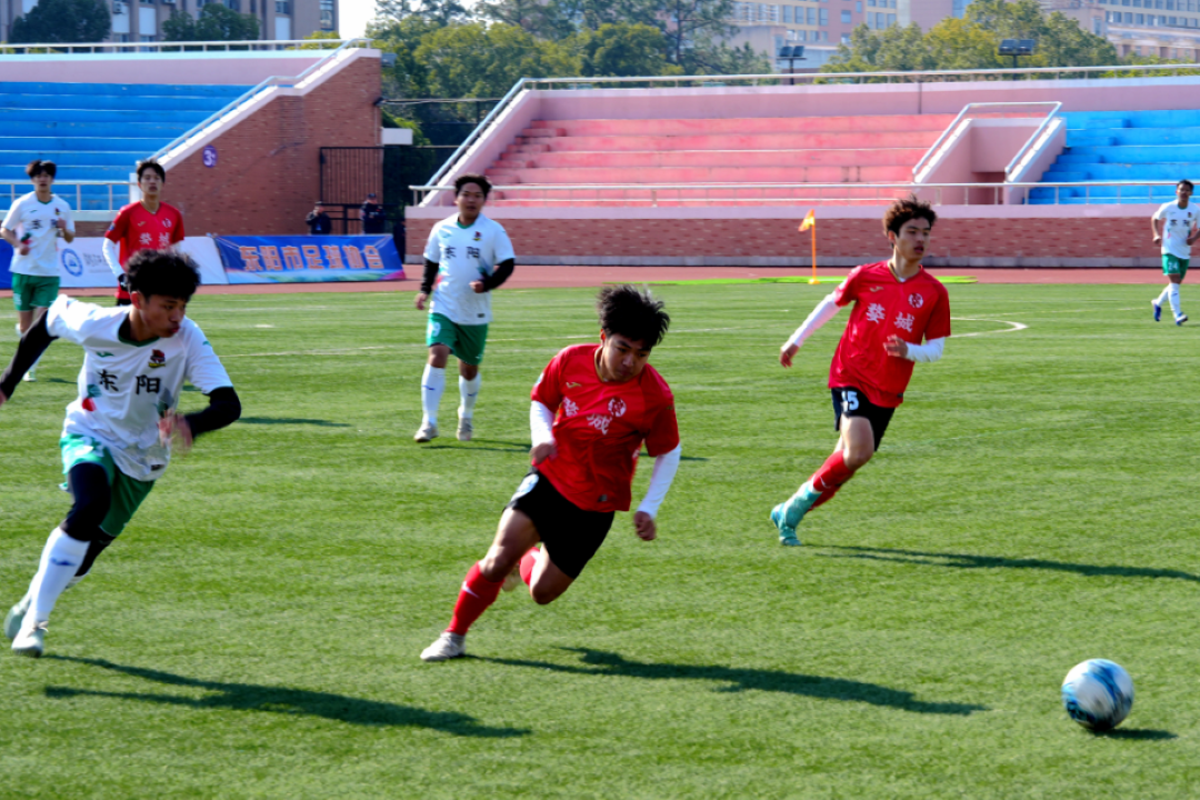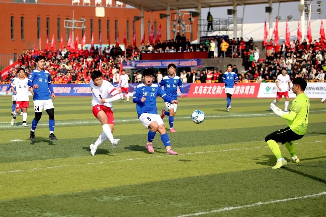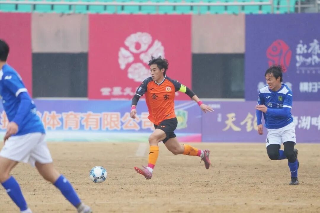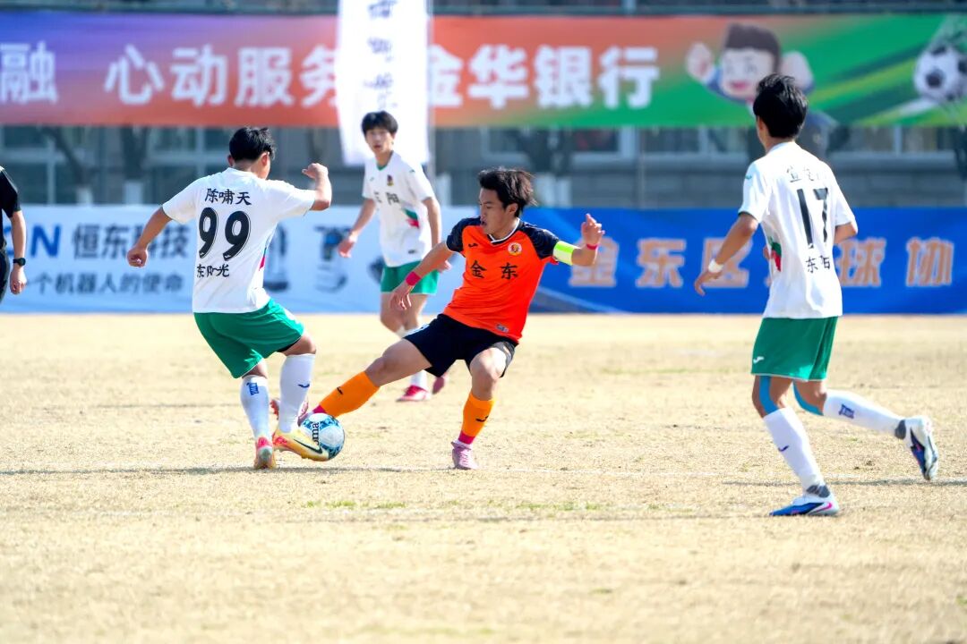 东阳队主场对阵武义队的比赛,开场后东阳队迅速掌控局势,通过边中结合的战术持续施压,但始终得势不得分。第37分钟,武义队抓住反击机会,15号冯云单刀冷静推射破门,率先打破僵局。上半场尾声,东阳队曾获点球良机,可惜主罚球员的射门被对方门将神勇扑出。易边再战,东阳队攻势不减,第62分钟由33号邵泽昂扳平比分。此后比赛进入高潮,第85分钟至第91分钟,东阳队掀起进攻狂潮,16号陆剑威在第85分钟和第87分钟连入两球完成梅开二度,6号杨靖则在补时阶段锦上添花,帮助球队以4:1完成逆转获胜。