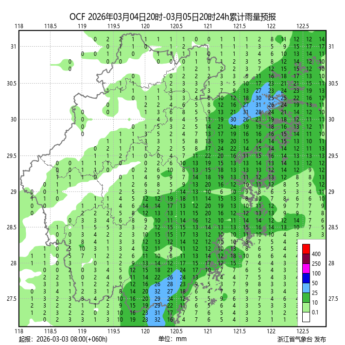 浙江省气象台特别提醒,不排除东部山区局部暴雨的可能性。而且,沿海地区还有8-9级风,请大家注意防范。